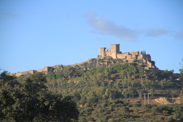 Este es un castillo que nos gustó mucho. Por suerte lo pudimos ver por dentro, de forma gratuita y nos encontramos el arco apuntado más impresionante y alto de todos los que hemos visto hasta el momento. Incluso se divisa desde lejos. Al llegar, nos prestaron un pequeño plano para que supiéramos que era cada cosa, lo que si que echamos en falta era que hubiera visitas guiadas, aunque no se si hay mucha afluencia de público para poder hacerlas. Lo que si hicimos fue hablar con el hombre que estaba allí al cargo y fue una charla muy instructiva. Fue uno de los castillo que más nos gustaron de ese día. Al estar situado en alto, se ve desde bastante lejos. Es un castillo que su cometido principal era salvaguardar la frontera con Portugal, siendo una de las fortalezas más importantes de La Raya, que era esa línea defensiva. Su nombre deriva del latín, alvus quercus, encina blanca o, también de Abu Al Qrq, país de los alcornoques del árabe.